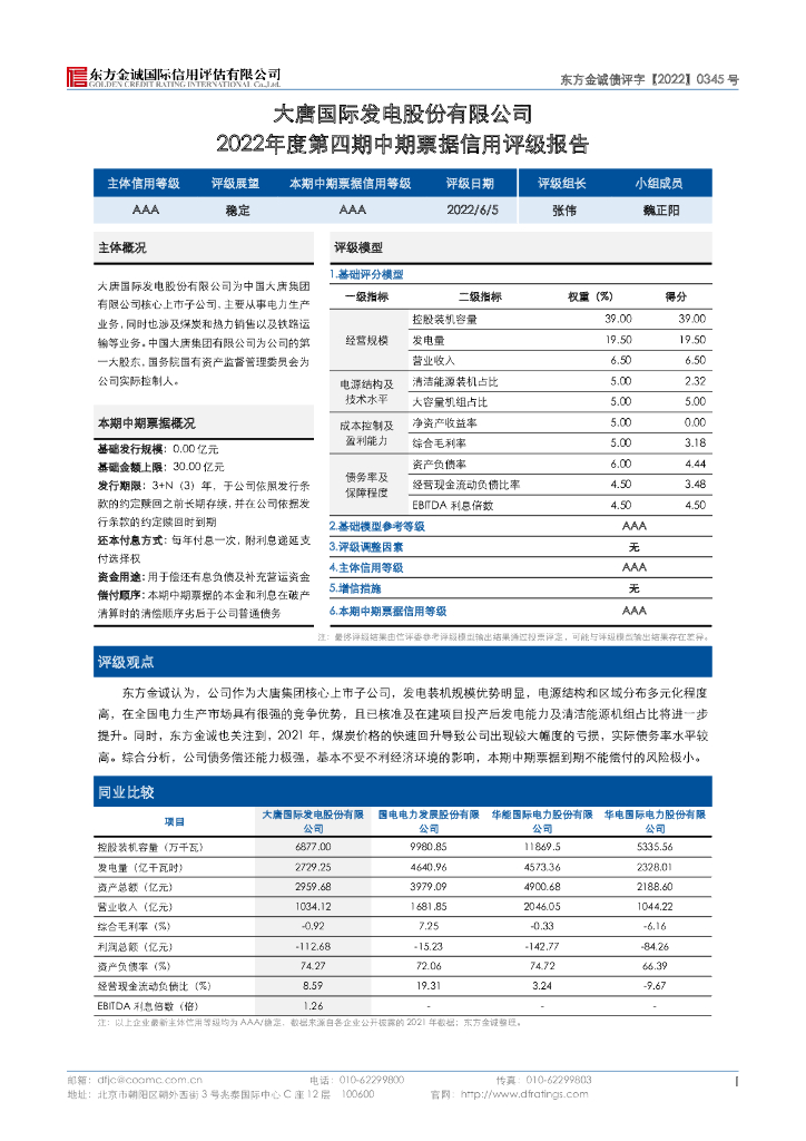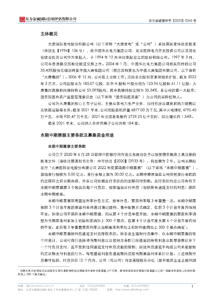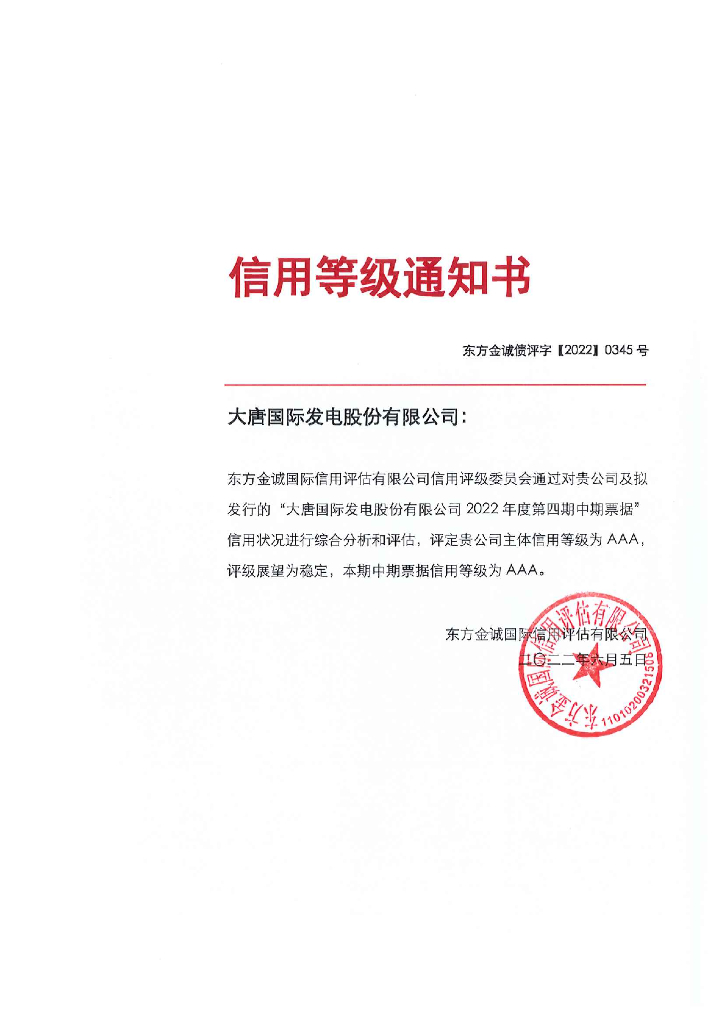 东方金诚:大唐国际发电股份有限公司2022年度第四期中期票据信用评级报告.pdf