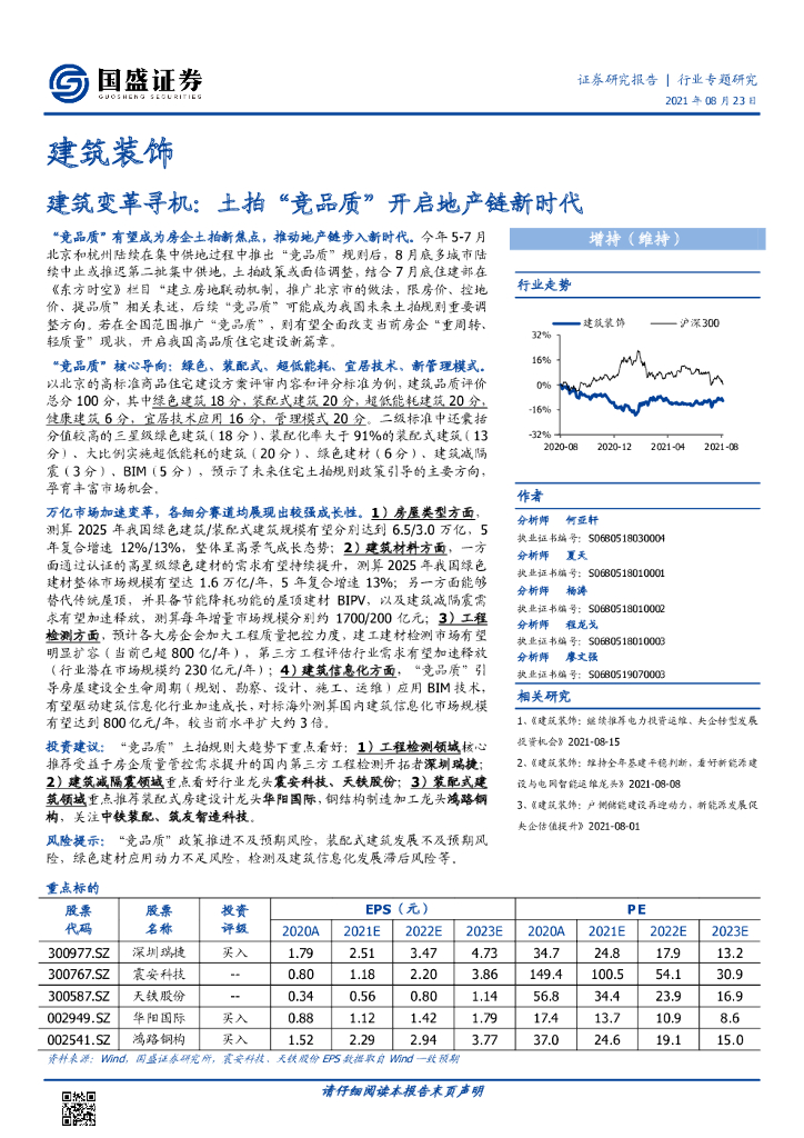 国盛证券:建筑装饰行业专题研究:建筑变革寻机:土拍“竞品质”开启地产链新时代.pdf