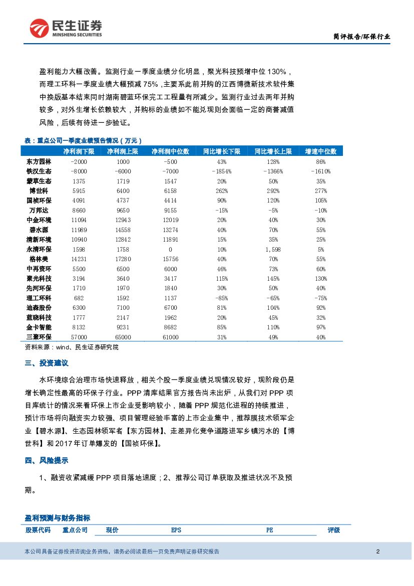 民生证券:环保行业一季度业绩预告情况综评:板块一季度业绩预增25%,水环境治理业绩持续兑现.pdf