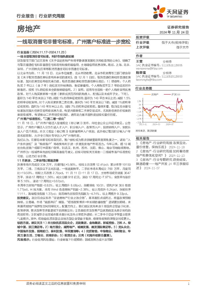天风证券:房地产行业研究周报:一线取消普宅非普宅标准,广州落户标准进一步宽松.pdf