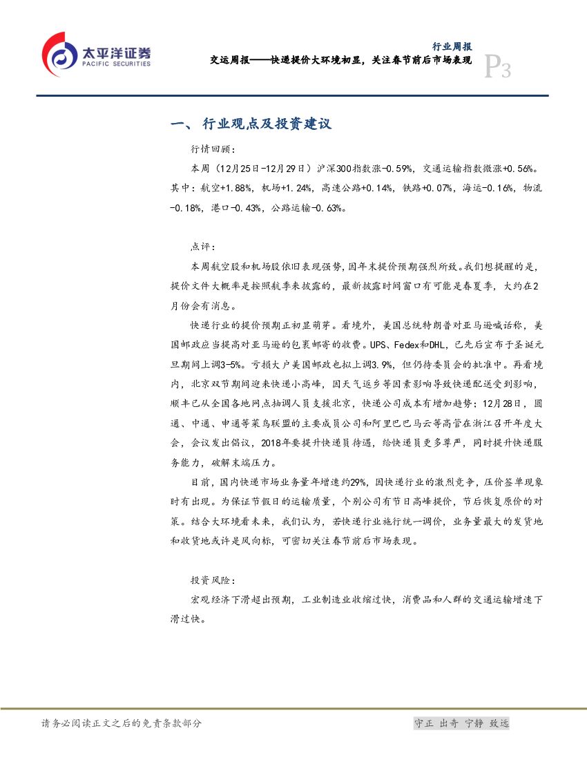 太平洋证券:交运周报:快递提价大环境初显,关注春节前后市场表现.pdf