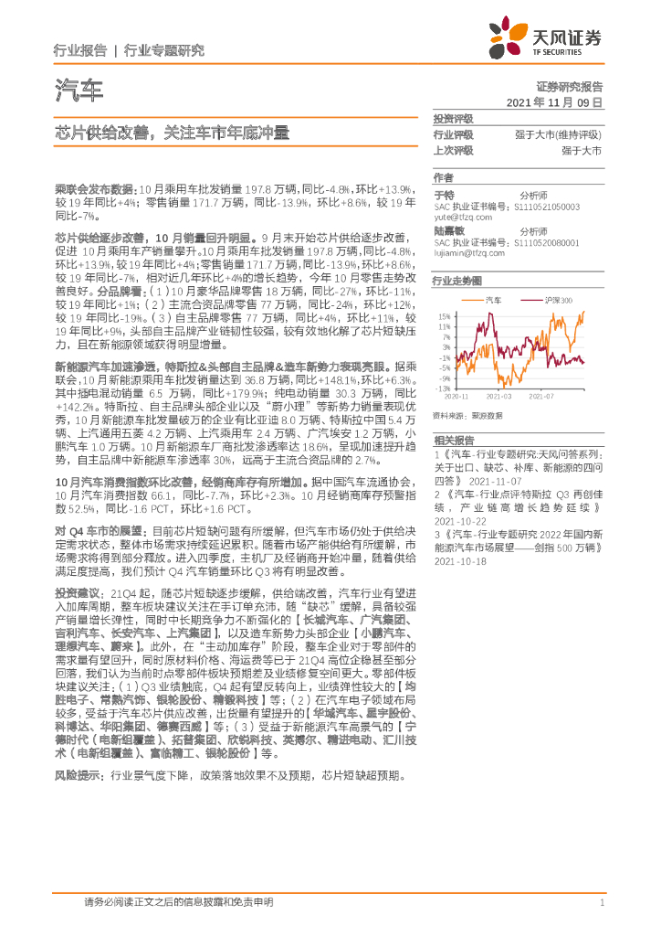 天风证券:汽车行业专题研究:芯片供给改善,关注车市年底冲量.pdf