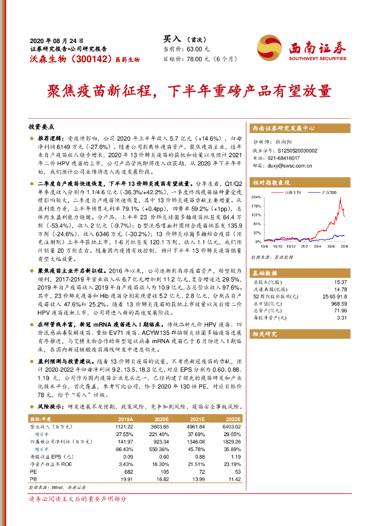 西南证券:沃森生物(300142)-聚焦疫苗新征程,下半年重磅产品有望放量.pdf