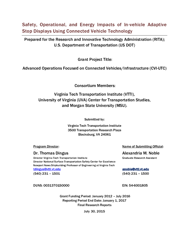 VTTI:2015年使用联网车辆技术的车载自适应停止显示器的安全、操作和能源影响报告(英文版).pdf
