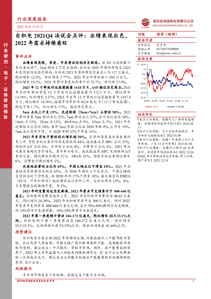 东亚前海证券:台积电2021Q4法说会点评:业绩表现出色,2022年需求持续看旺.pdf
