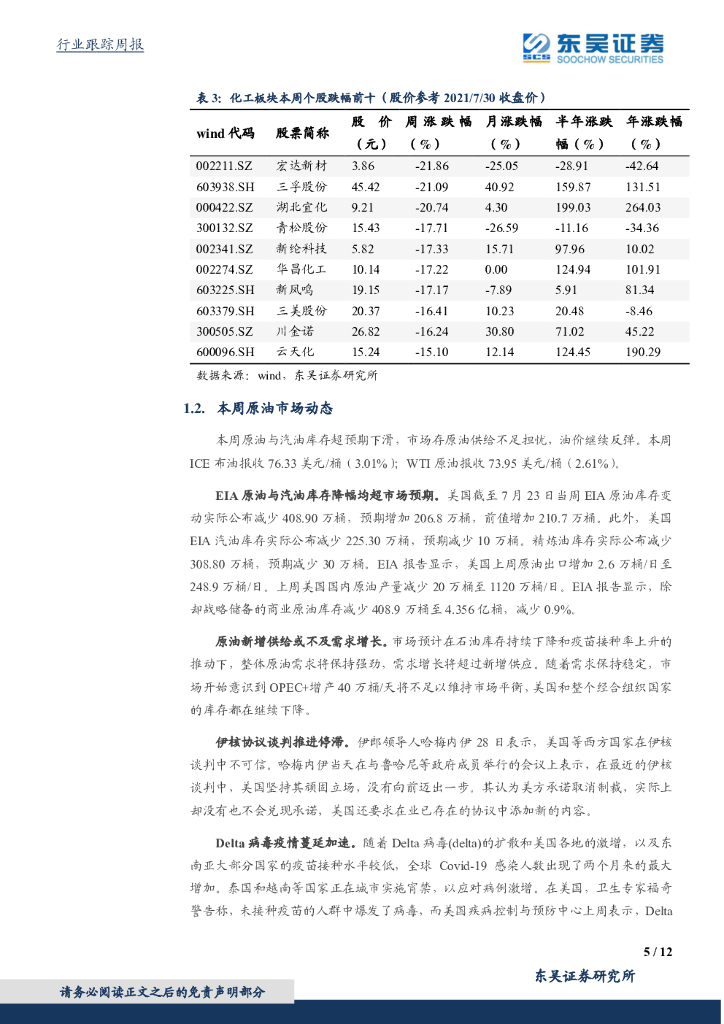 东吴证券:化工行业2021年7月第五周周报:市场指数俯冲震荡,半导体材料板块逆市大涨.pdf