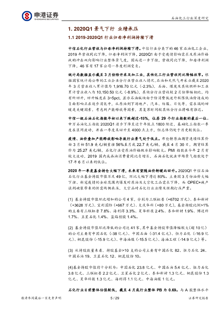 申港证券:石油石化行业2019年报及2020一季报总结:供需双杀 或将触底.pdf