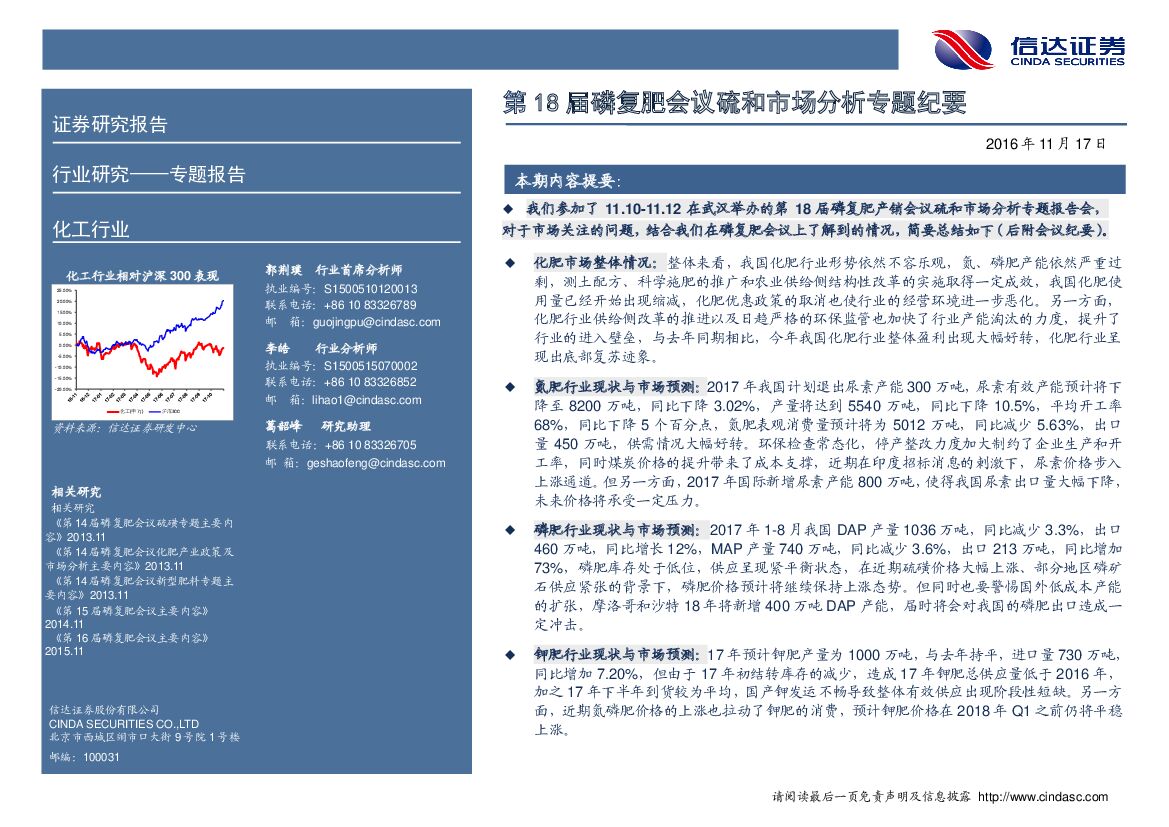 信达证券:化工行业研究:第18届磷复肥会议硫和市场分析专题纪要.pdf