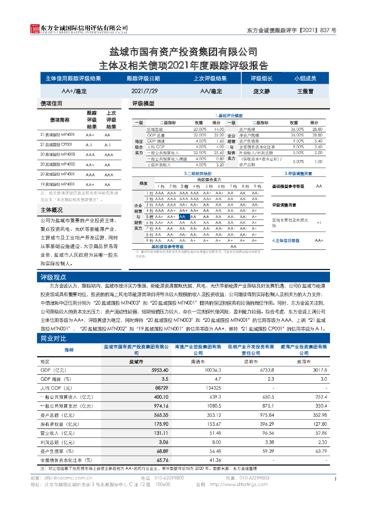 东方金诚:盐城市国有资产投资集团有限公司主体信用评级报告.pdf