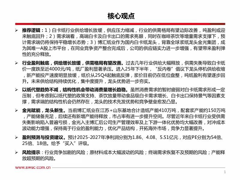 西南证券:博汇纸业(600966)-白卡龙头迎周期拐点,整合预期打开成长空间.pdf