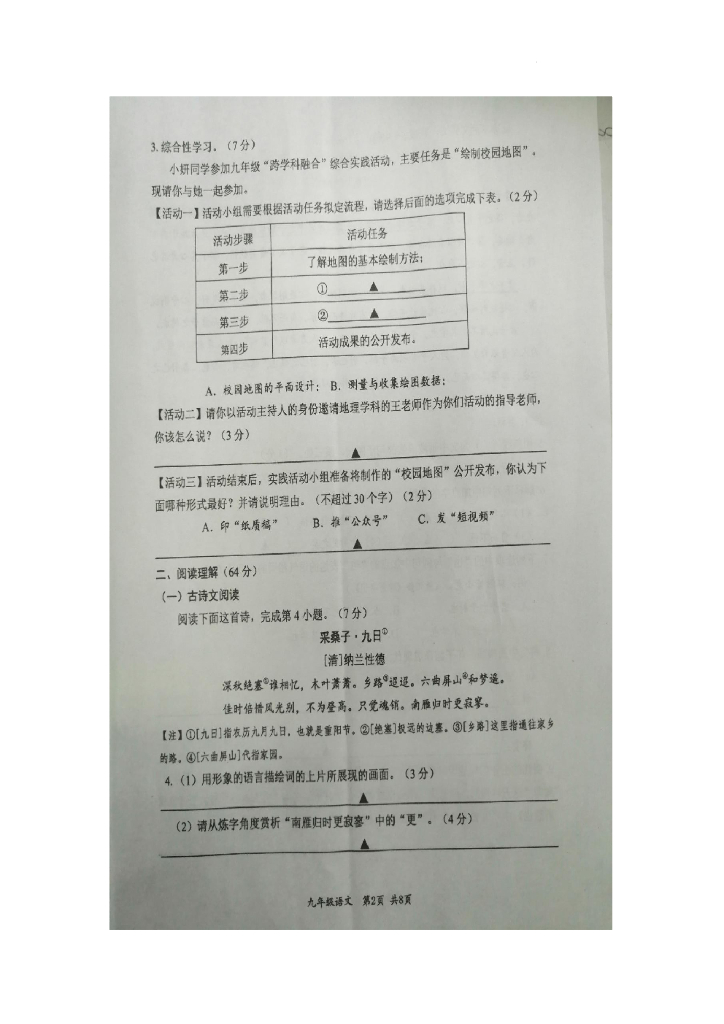 2022年江苏省盐城市滨海县中考第二次调研考试语文试题.doc