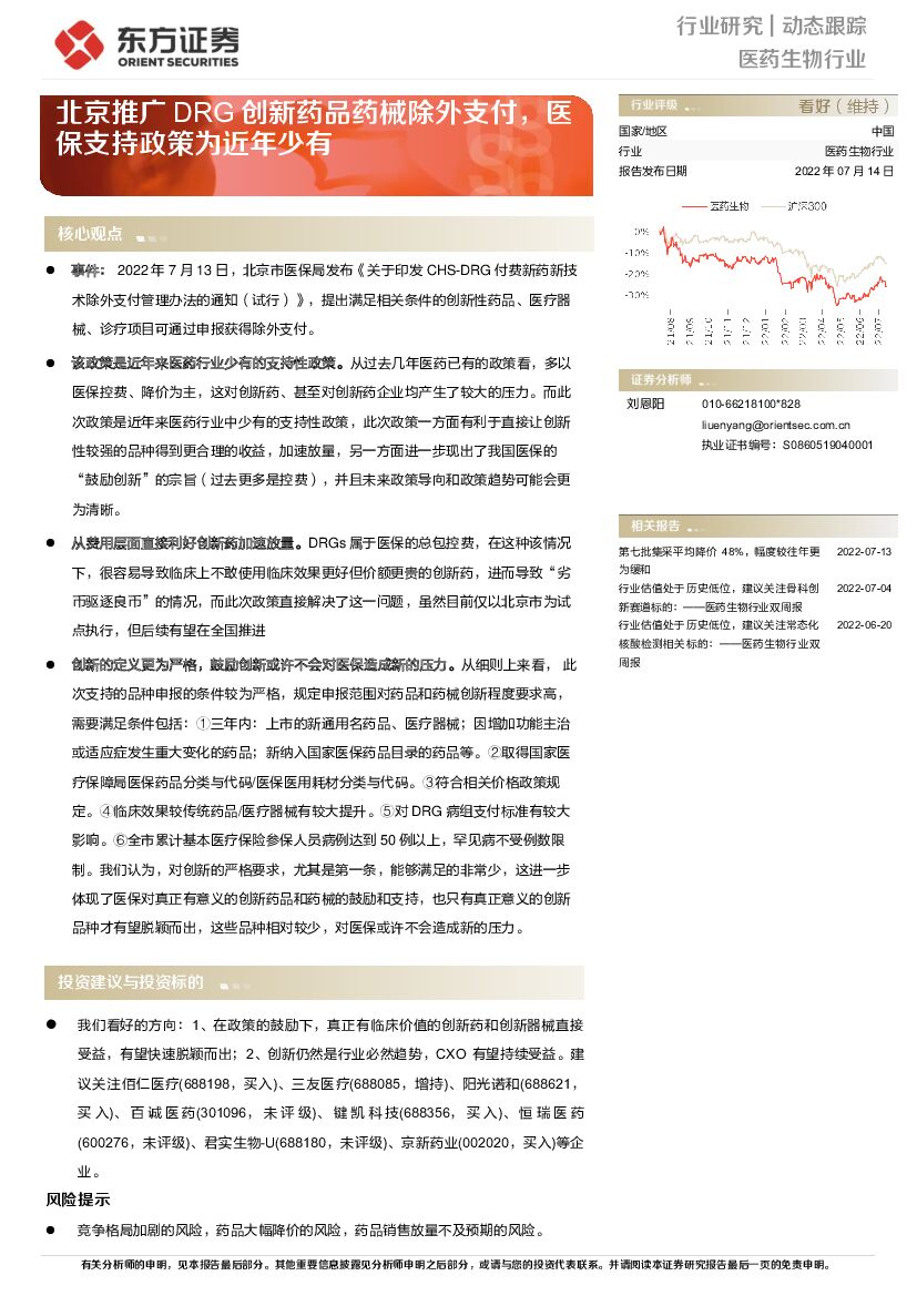 东方证券:医药生物行业动态跟踪:北京推广DRG创新药品药械除外支付,医保支持政策为近年少有.pdf