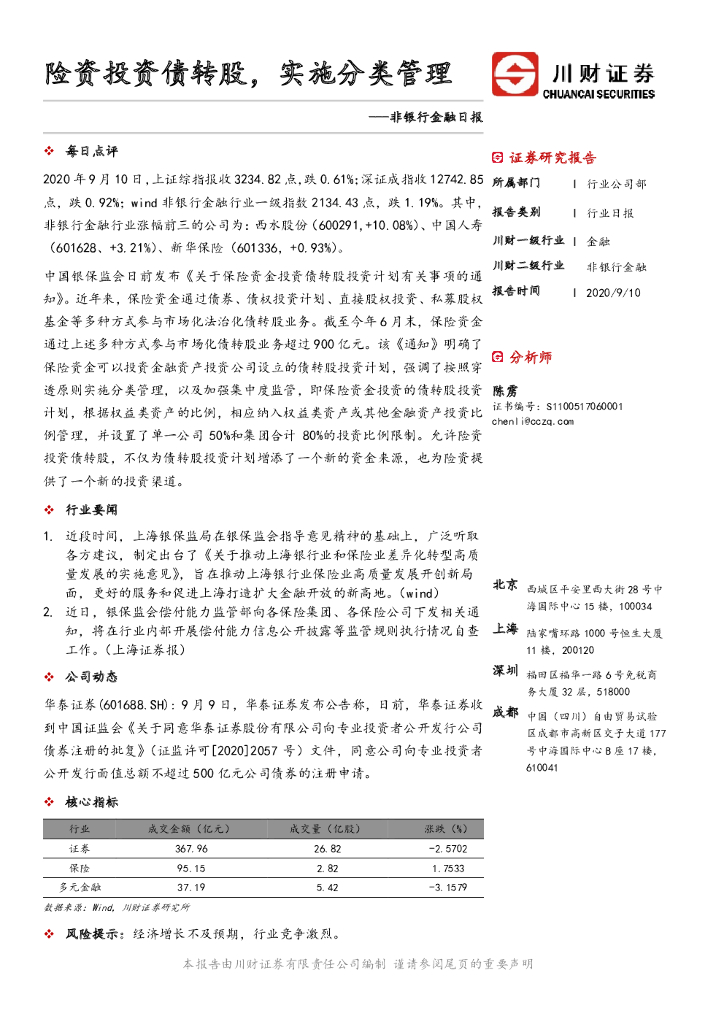 川财证券:非银行金融日报:险资投资债转股,实施分类管理.pdf