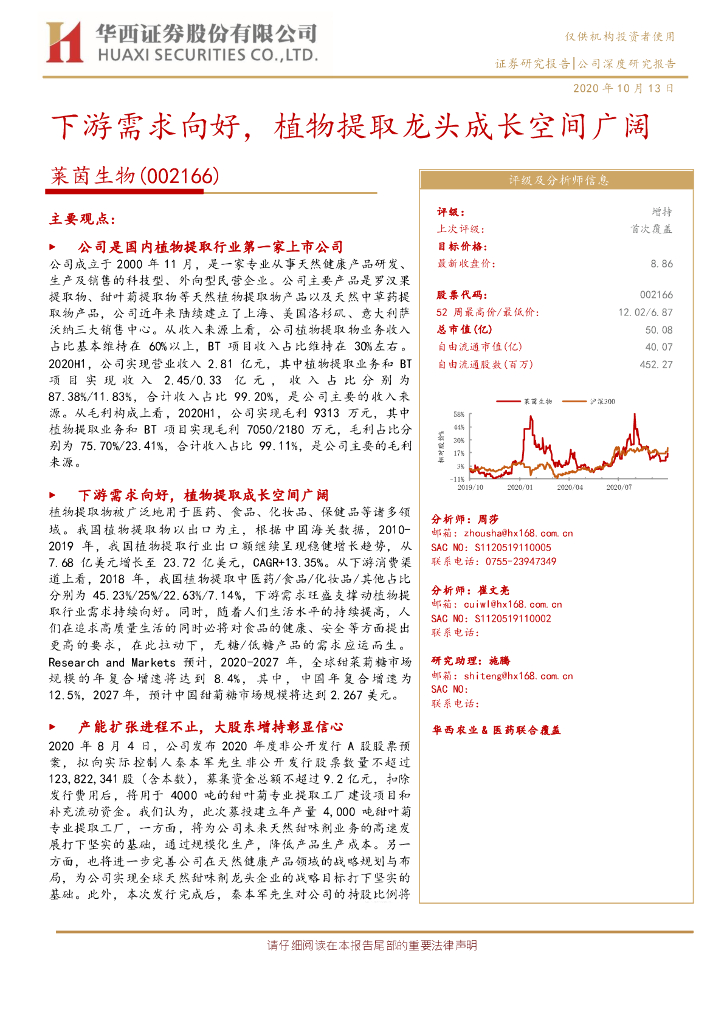 华西证券:莱茵生物(002166)-下游需求向好,植物提取龙头成长空间广阔.pdf