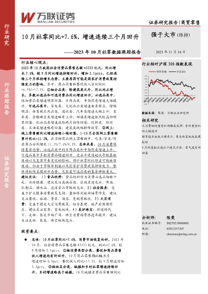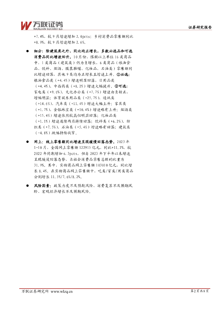 万联证券:2023年10月社零数据跟踪报告:10月社零同比+7.6%,增速连续三个月回升.pdf