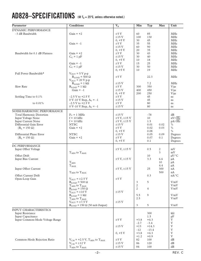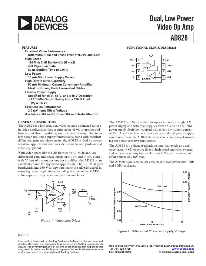 ANALOG DEVICES AD828 Dual, Low Power Video Op Amp 数据手册.pdf