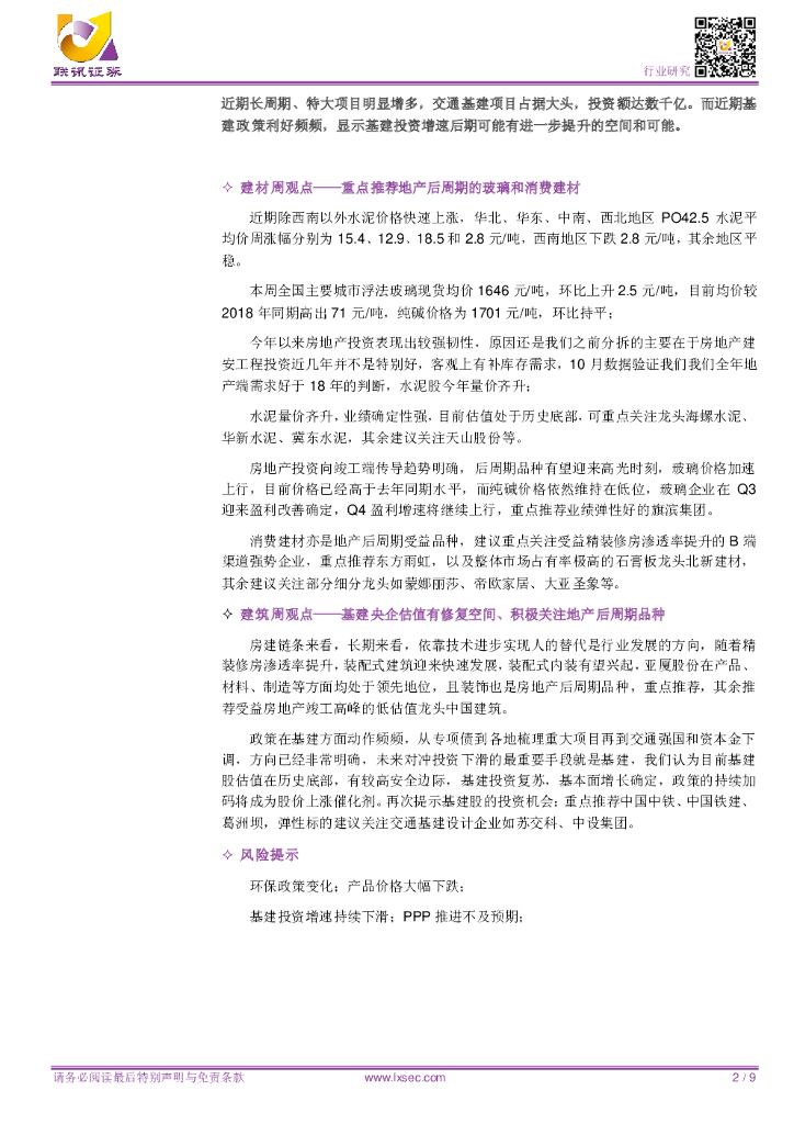 联讯证券:联讯建筑建材周观点:基建央企有望迎估值修复行情,继续推地产后周期的玻璃和消费建材.pdf