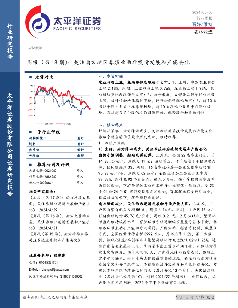 太平洋证券:农林牧渔周报(第18期):关注南方地区养殖业雨后疫情发展和产能去化.pdf