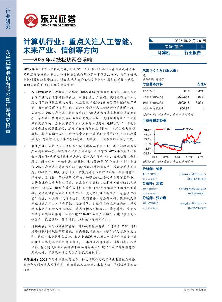 东兴证券:计算机行业2025年科技板块两会前瞻:重点关注人工智能、未来产业、信创等方向.pdf