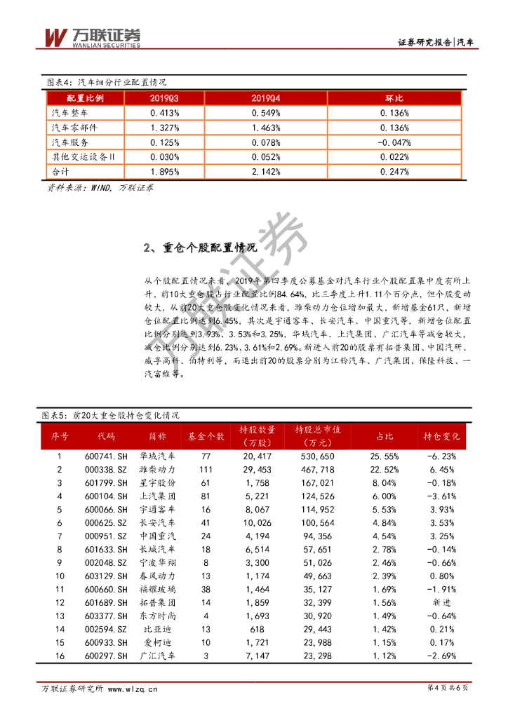 万联证券:汽车行业2019Q4公募基金持仓分析:持仓比例波浪上行,业绩改善个股关注度提升.pdf