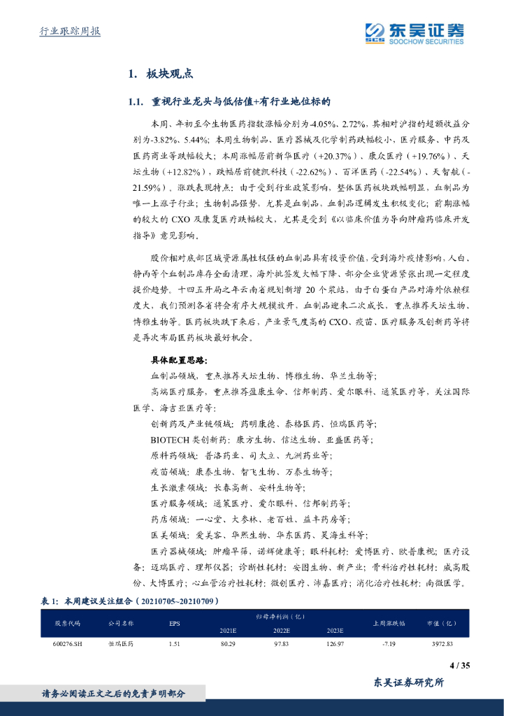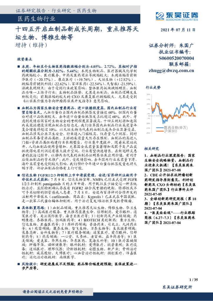 东吴证券:医药生物行业——十四五开启血制品新成长周期,重点推荐天坛生物、博雅生物等.pdf