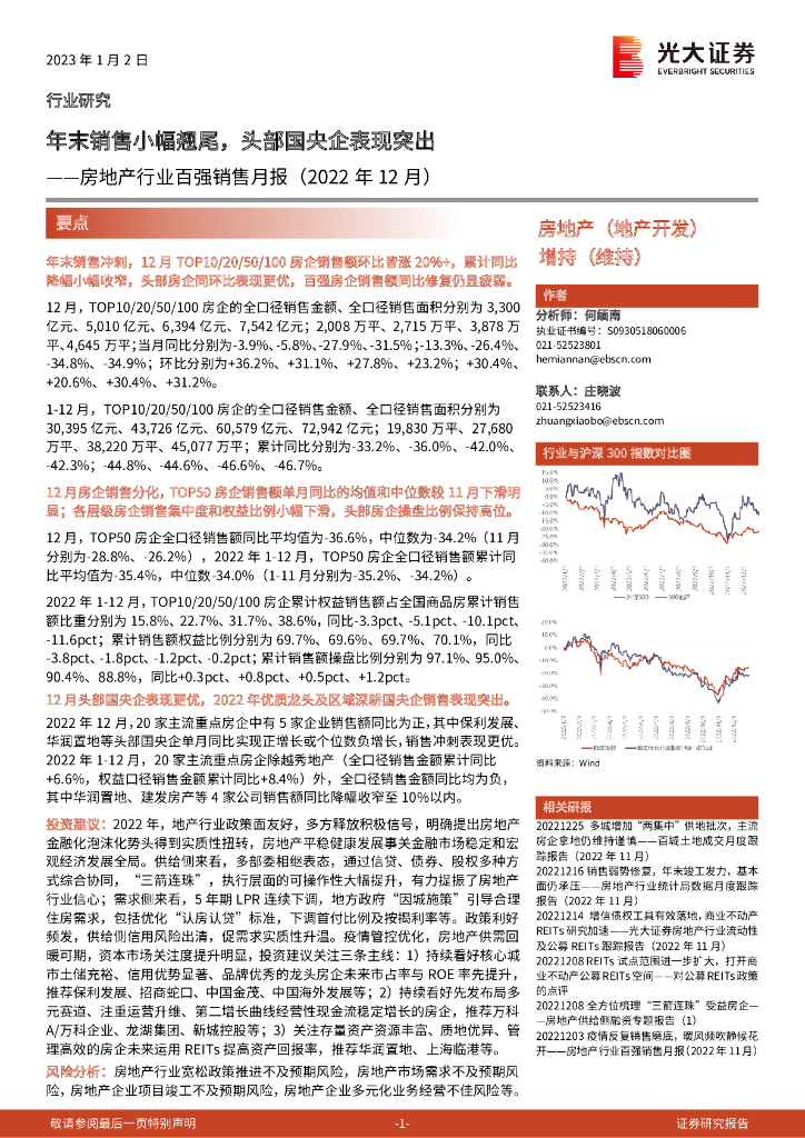 光大证券:房地产行业百强销售月报:年末销售小幅翘尾,头部国央企表现突出.pdf
