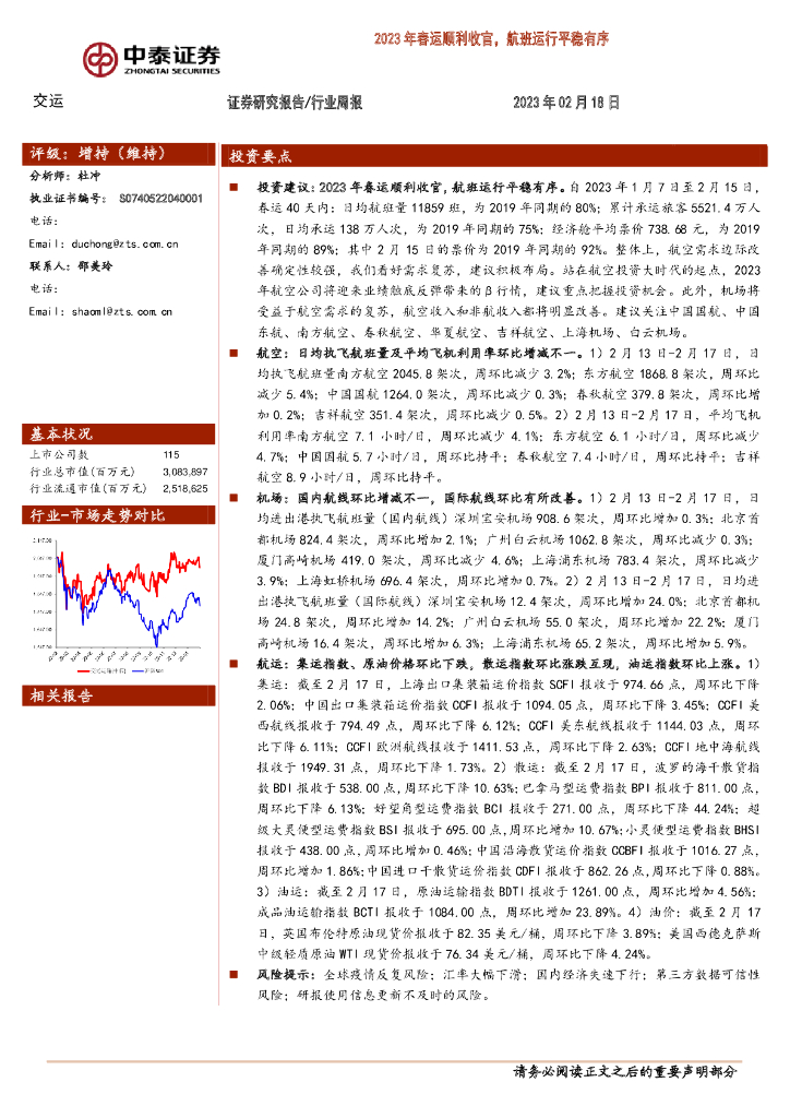 中泰证券:交运行业周报:2023年春运顺利收官,航班运行平稳有序.pdf