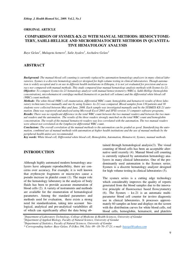 比较Sysmex-kx-21与手动方法:血细胞计数, Sahli-Hellige和微血细胞压积法在定量血液学分析中.pdf