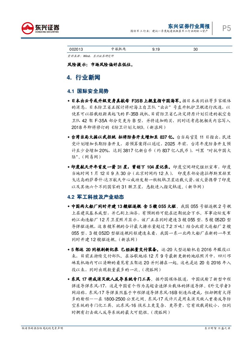东兴证券:国防军工行业周报:建议一季度起逢低配置军工行业的核心资产.pdf