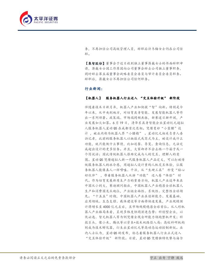 太平洋证券:机械日报:服务机器人行业迈入“交互体验升级”新阶段.pdf