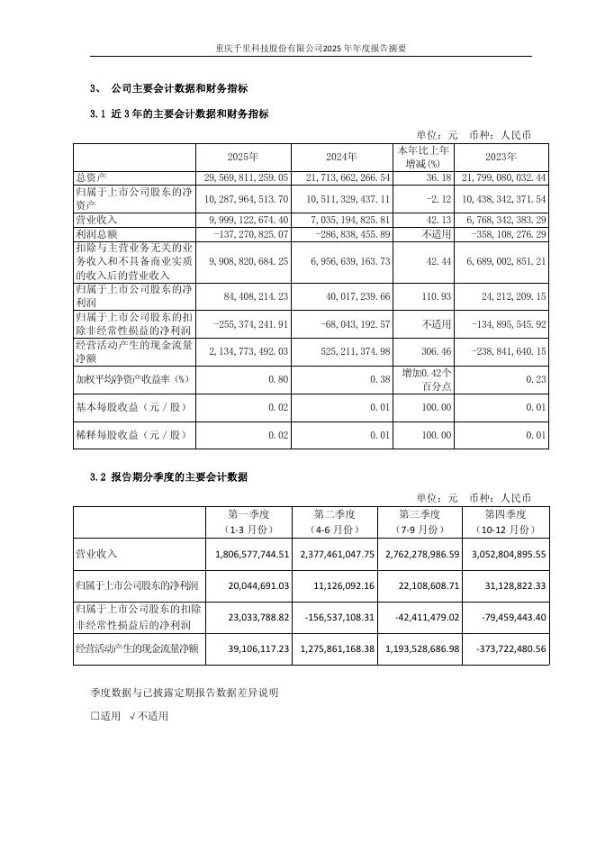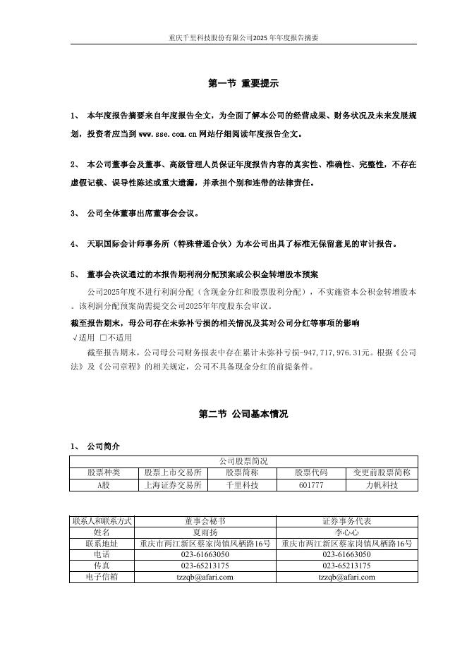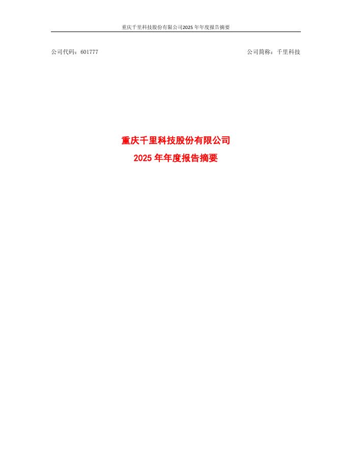 601777-千里科技:重庆千里科技股份有限公司2025年年度报告摘要.pdf