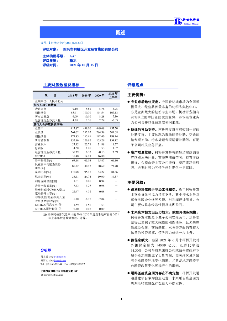 新世纪:绍兴市柯桥区开发经营集团有限公司主体信用评级报告.pdf