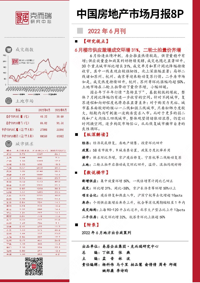 克尔瑞:2022年6月中国房地产市场月报8P.pdf