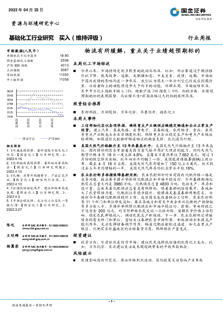 国金证券:基础化工行业研究:物流有所缓解,重点关于业绩超预期标的.pdf