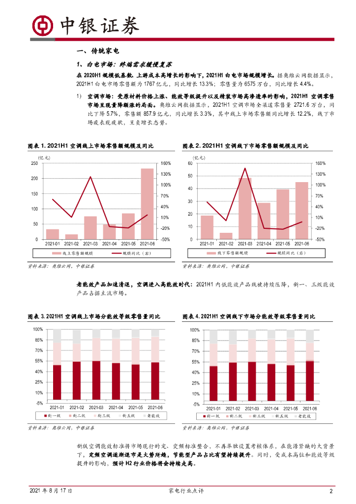 中银证券:家电行业点评:21H1奥维半年数据:传统家电品类价格提升明显,新兴家电成为行业主要增长动力.pdf