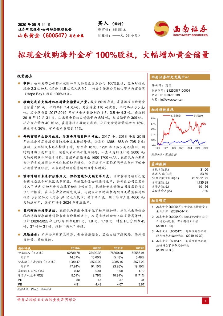 西南证券:山东黄金(600547)-拟现金收购海外金矿100%股权,大幅增加黄金储量.pdf
