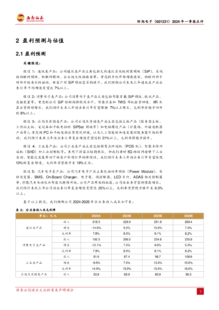 西南证券:环旭电子(601231)-2024年一季报点评:业绩符合预期,云端及存储、汽车类业务高增.pdf