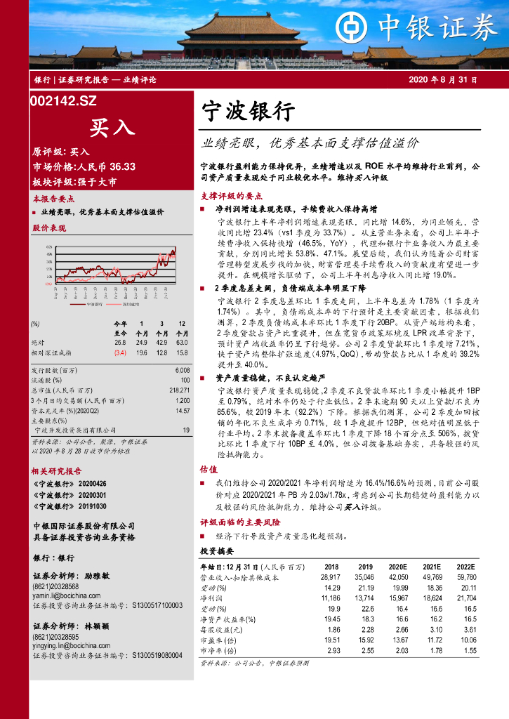 中银证券:宁波银行(002142)-业绩亮眼,优秀基本面支撑估值溢价.pdf