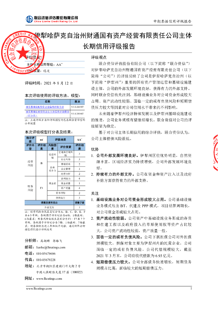 联合资信:伊犁哈萨克自治州财通国有资产经营有限责任公司主体长期信用评级报告.pdf