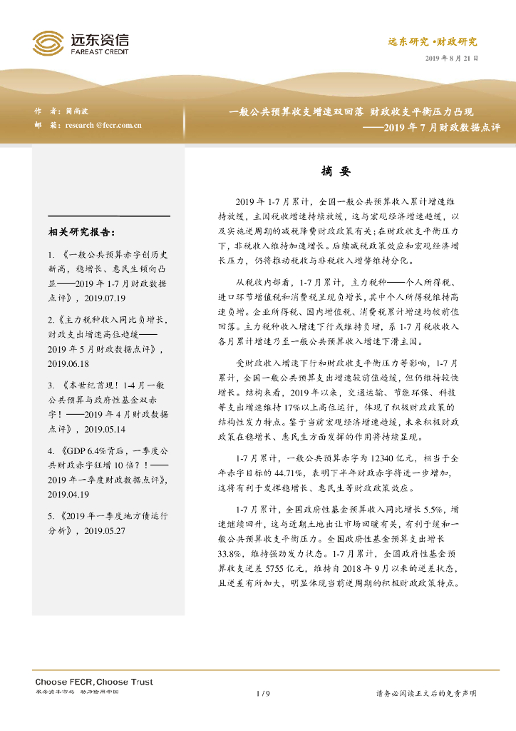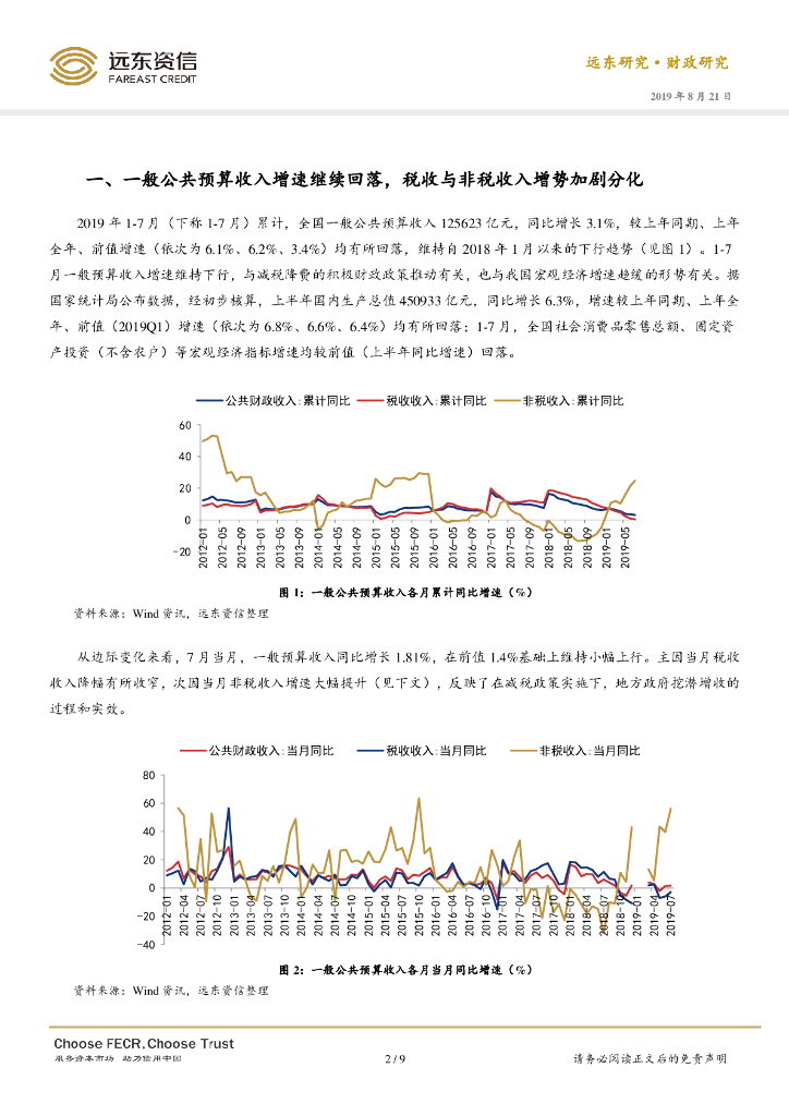 远东资信:一般公共预算收支增速双回落,财政收支平衡压力凸现——2019年7月财政数据点评.pdf