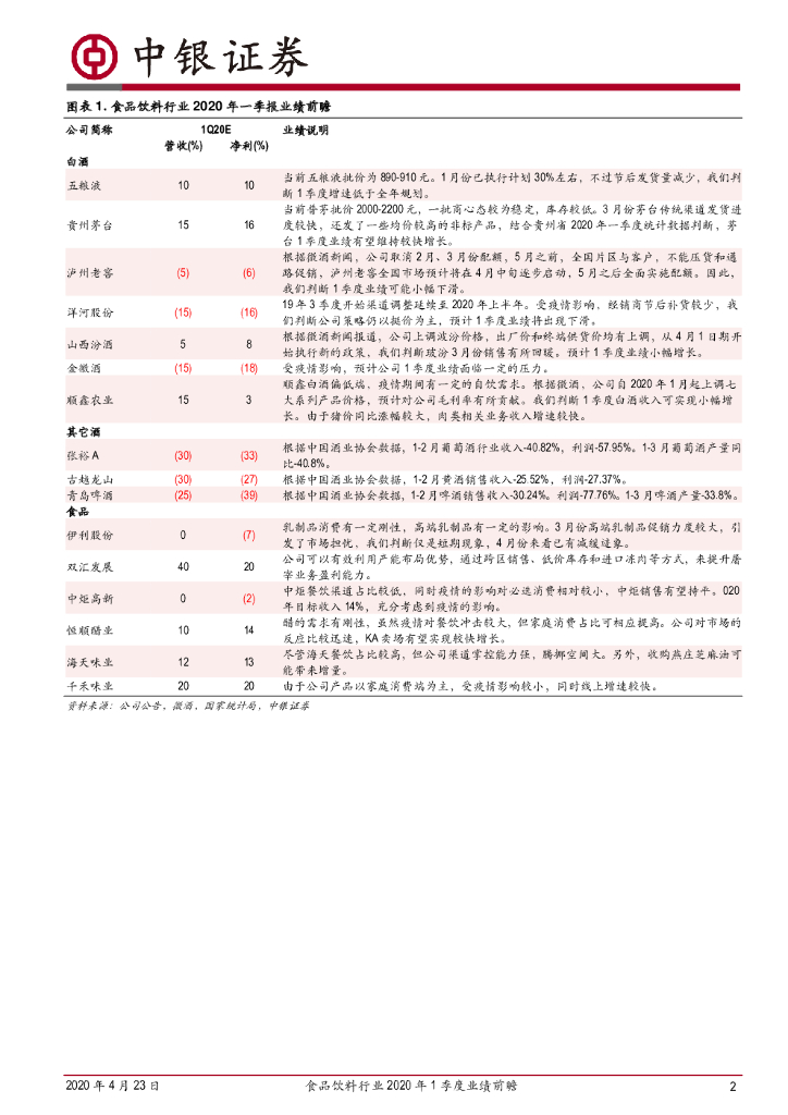 中银证券:食品饮料行业2020年1季度业绩前瞻:酒类受疫情冲击较大,食品稳健增长可期.pdf