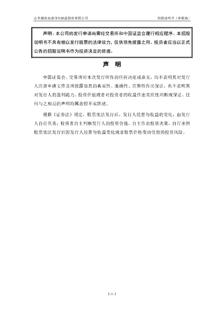 山东威高血液净化制品股份有限公司科创板IPO上市招股说明书(申报稿).pdf