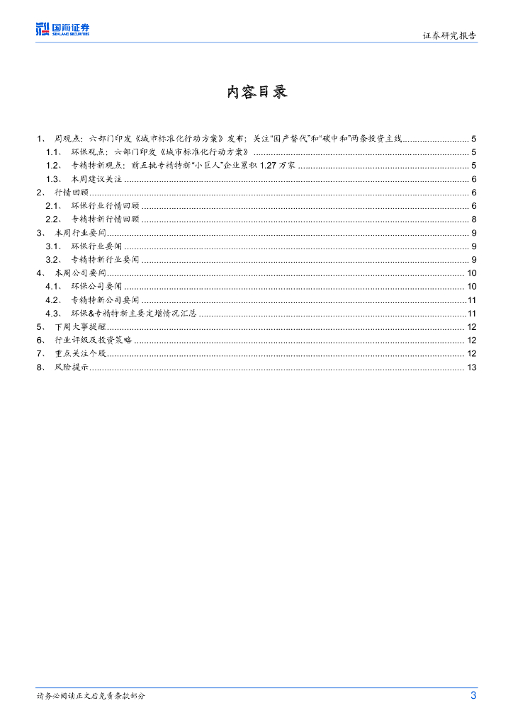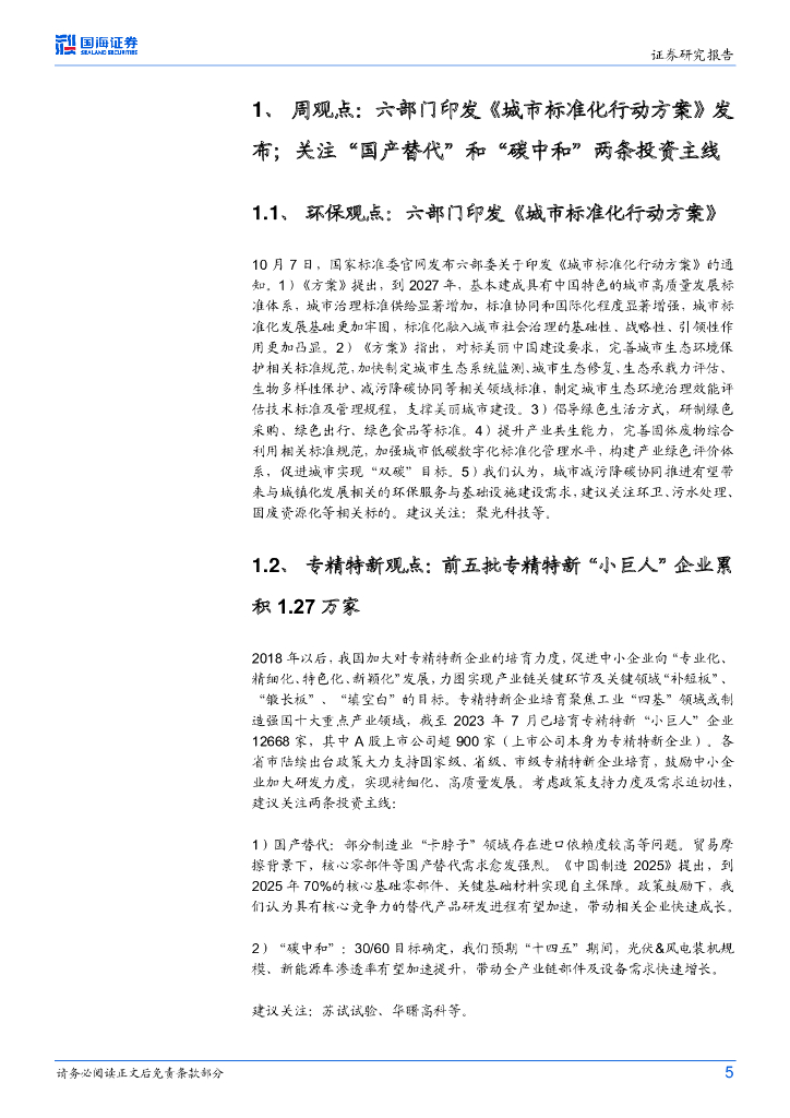 国海证券:环保&专精特新周报:六部门印发《城市标准化行动方案》.pdf