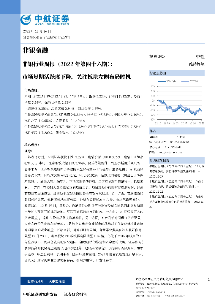 中航证券:非银行业周报(2022年第四十六期):市场短期活跃度下降,关注板块左侧布局时机.pdf