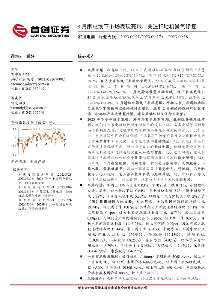首创证券:家用电器行业周报:8月家电线下市场表现亮眼,关注扫地机景气修复.pdf