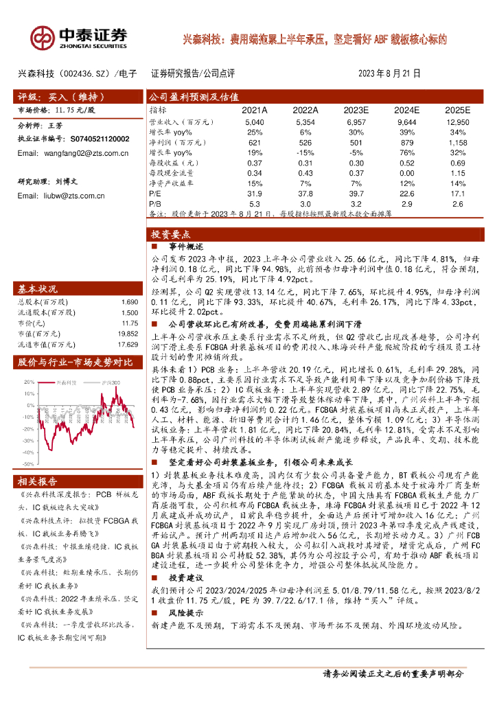 中泰证券:兴森科技:费用端拖累上半年承压,坚定看好ABF载板核心标的.pdf