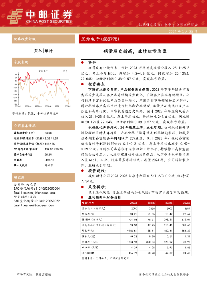 中邮证券:艾为电子(688798)-销量历史新高,业绩扭亏为盈.pdf