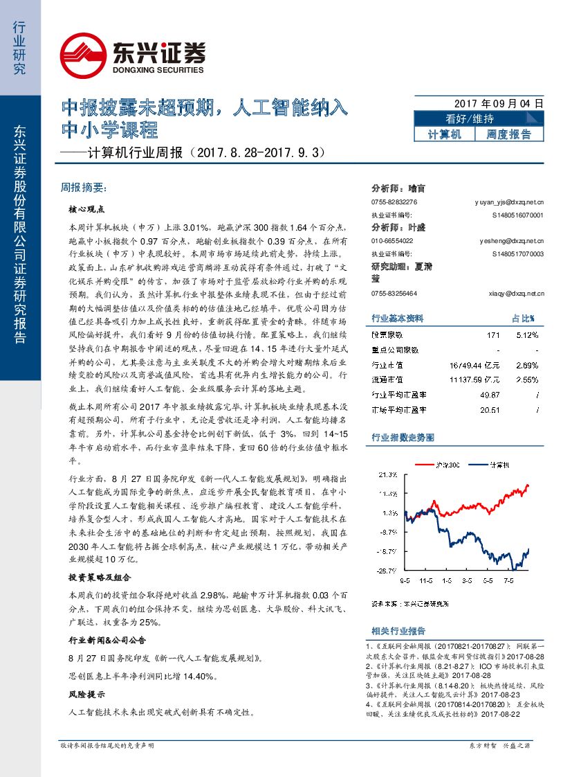 东兴证券:计算机行业周报:中报披露未超预期,人工智能纳入中小学课程.pdf