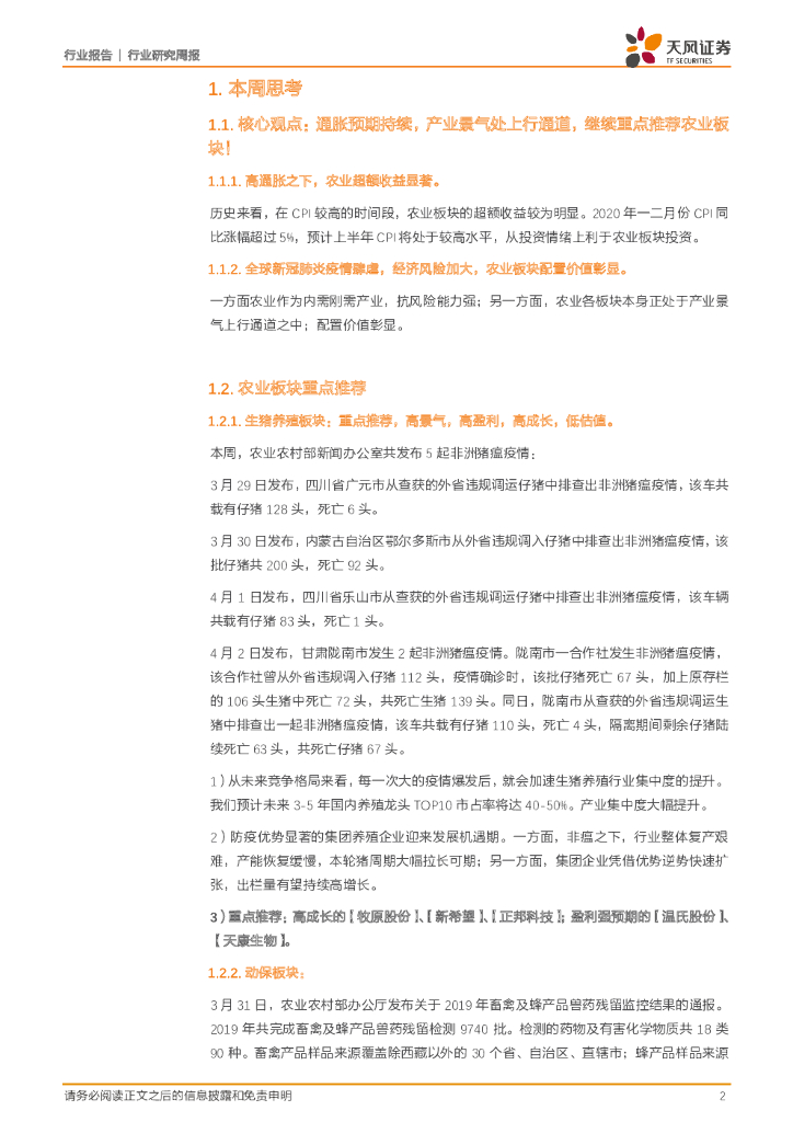 天风证券:农林牧渔2020年第14周周报:通胀预期持续,产业景气处上行通道,继续重点推荐农业板块!.pdf