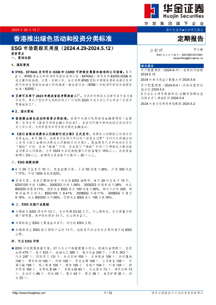 华金证券:ESG市场跟踪双周报:香港推出绿色活动和投资分类标准.pdf
